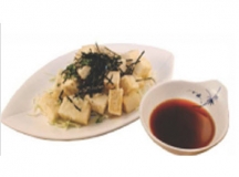 Out: Albacore, mozzarella cheese, sweet sauce, masago, green onion, spicy mayo sauce