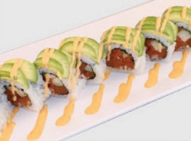 Spicy tuna,crab meat,avocado,radish sprout, crunch,sweet,spicy mayo &siriracha sauce wrapped in salmon