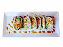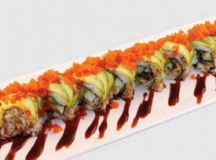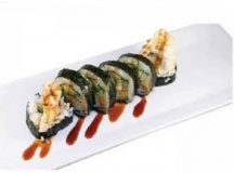 Out: Avocado, shrimp tempura, sweet & spicy mayo sauce