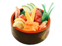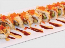 Out: Salmon, tuna, tai, avocado, masago, green onion, sweet & spicy mayo sauce