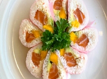 Out: Salmon, avocado, macadamia nut, sweet & spicy mayo sauce